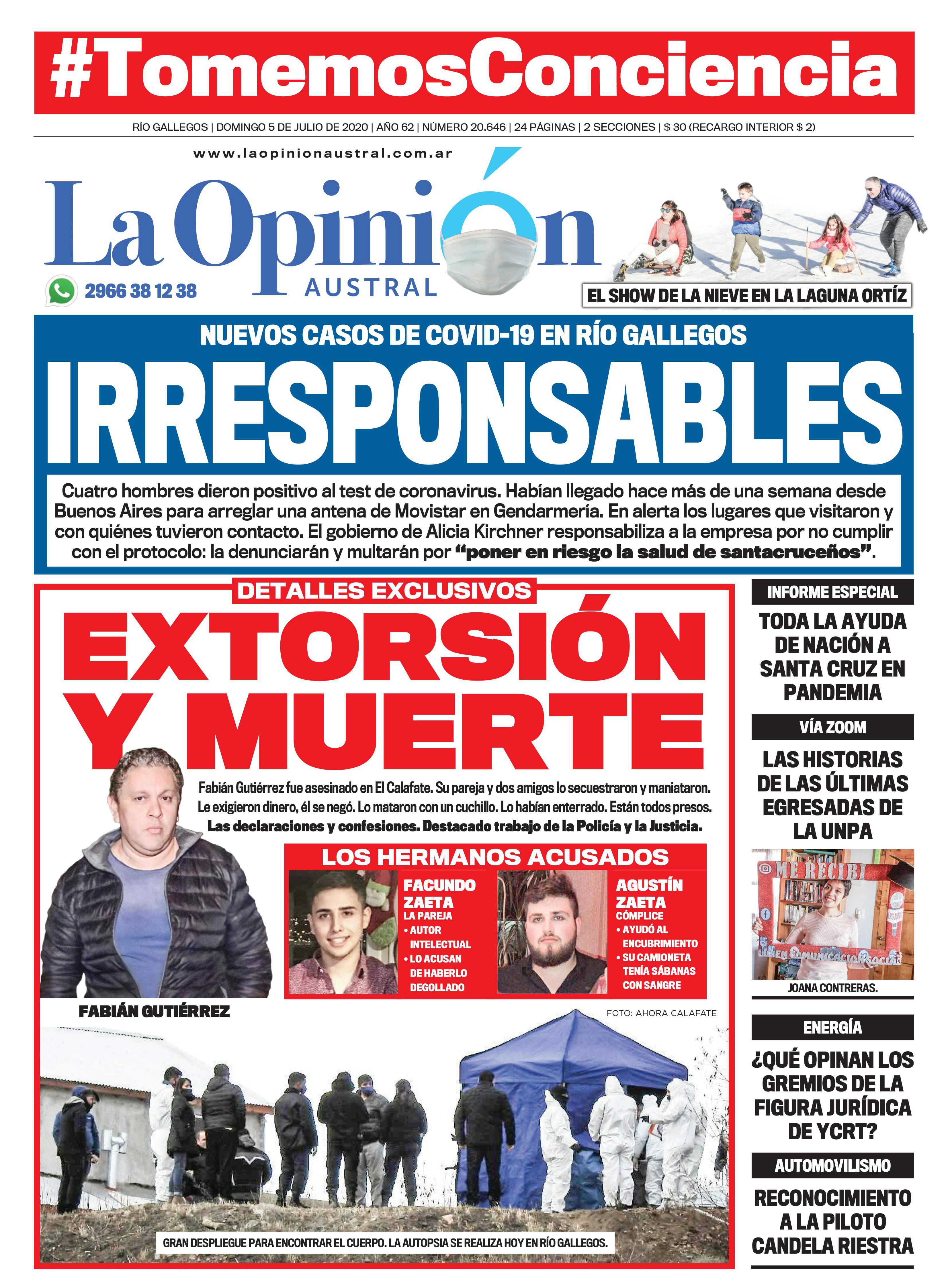 La madrugada del 1 de julio Fabián Gutiérrez se había juntado con algunos amigos y comentó de esa situación, a pocos días de regresar a El Calafate.