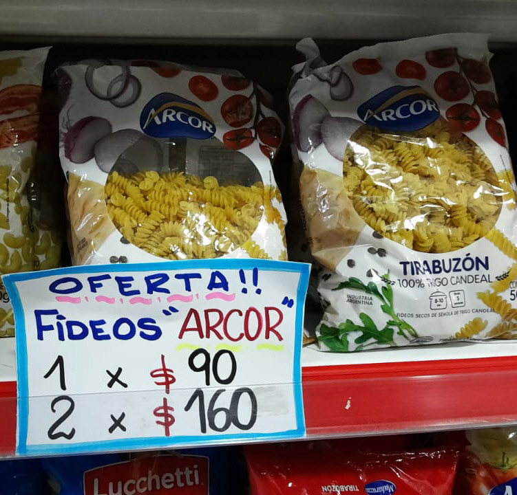 Así, la leche por litro en caja cuesta 240 pesos, la yerba por kilo a 690 pesos de una sola marca y de renombre, el aceite de 900 cc cuesta 240 pesos, el arroz por kilo 240 pesos, los fideos tirabuzón por medio kilo cuestan, en promoción, uno por 90 pesos y dos por 160 y el puré de tomate de 500 cc cuesta unos 110 pesos.
