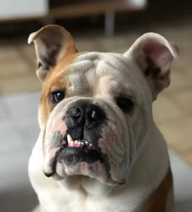 Homero era un Bulldog inglés sano, de un año y medio, pero tenía una dermatitis en el cuello, algo que le ocurre seguido a razas de este tipo.