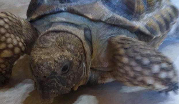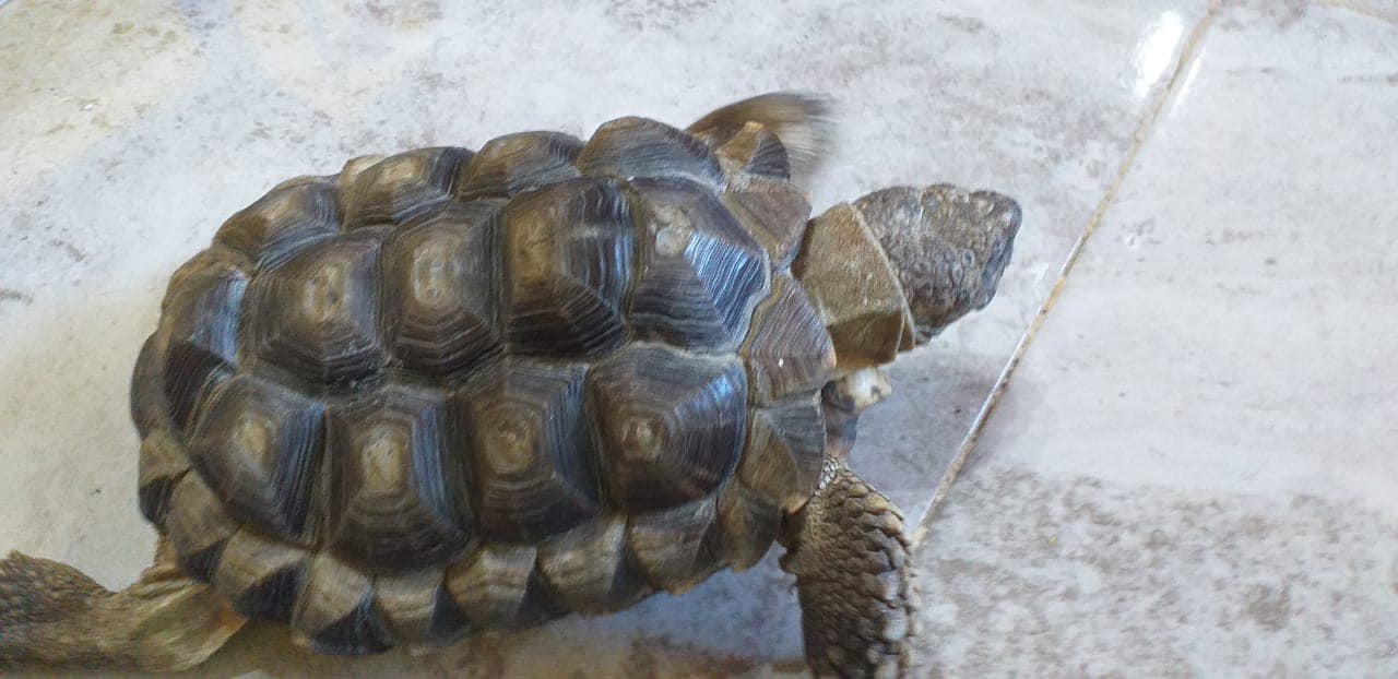 Gisella, una vecina de Río Gallegos, publicó en un grupo de mascotas que encontró a una tortuga terrestre en la calle Entre Ríos. En el posteo explicó que la salvaron de que la atropellara un auto y la recogieron para cuidarla en su casa, hasta que pudieran dar con sus dueños.