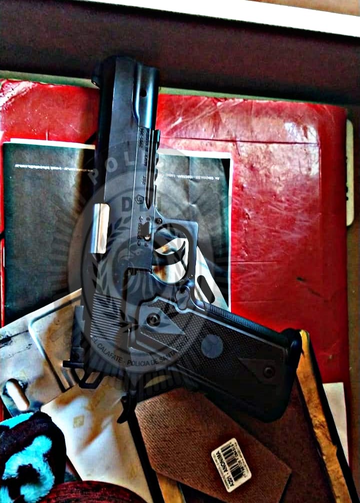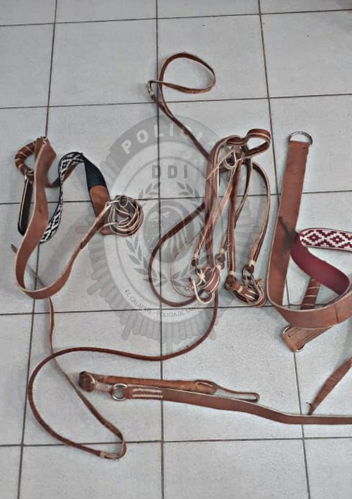 Los allanamientos se llevaron a cabo en barrio Terrazas de Manantiales, en el barrio Cerro Calafate y en el barrio Lago Argentino, donde se secuestraron varios elementos de talabartería (artículos realizados en cuero, para caballería), un celular, cuchillos y una replica de arma de fuego.
