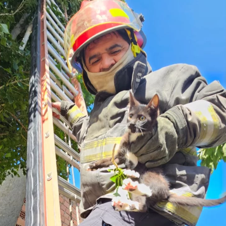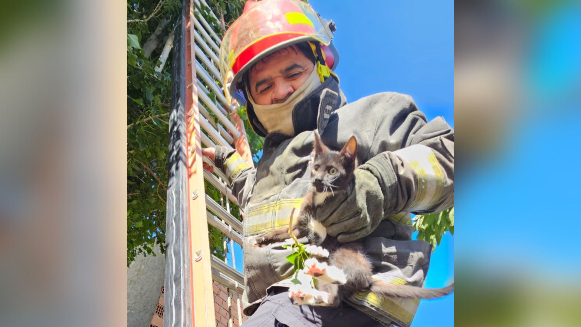 El dueño del gato, de 21 años, expresó su agradecimiento por el profesionalismo y prontitud de la División Cuartel Vigésima Primera.