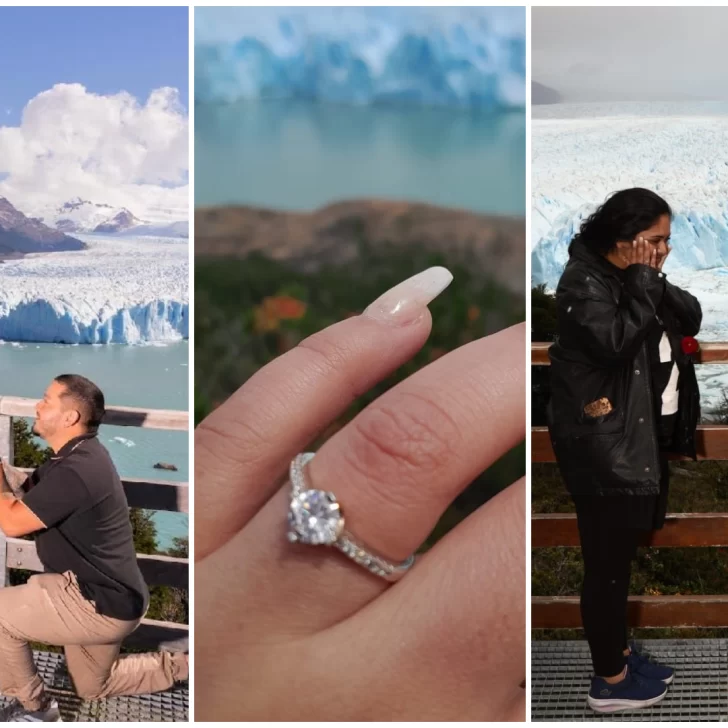 Específicamente, ante la imponente masa de hielo de 5 kilómetros de ancho y unos 70 metros de altura sobre el nivel del lago que es el glaciar Perito Moreno, han tenido lugar al menos dos pedidos de matrimonio en los últimos dos meses.