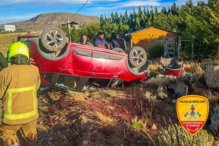 Un siniestro vial ocurrido en la tarde del miércoles encendió las alertas en un sector urbano de El Calafate, cuando un automóvil protagonizó un vuelco sobre la calle Héctor “Pato” Villalba al 700. El hecho motivó la intervención del personal de la División Cuartel 21ra de Bomberos de la Policía de Santa Cruz, junto a efectivos policiales y personal sanitario, aunque afortunadamente no se registraron personas lesionadas.