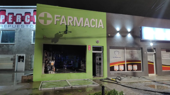 Según pudo saber La Opinión Austral, el siniestro ocurrió cerca de la primera hora del viernes 14 de noviembre en Farmacia Santa Lucía, ubicada sobre Salvador Lara al 1100. Las llamas fueron advertidas por vecinos que circulaban por la zona y rápidamente dieron aviso a Bomberos. Las imágenes registradas muestran cómo el fuego avanzó a gran velocidad dentro del comercio, alimentado por la gran concentración de calor que incluso provocó la explosión de la ventana frontal.