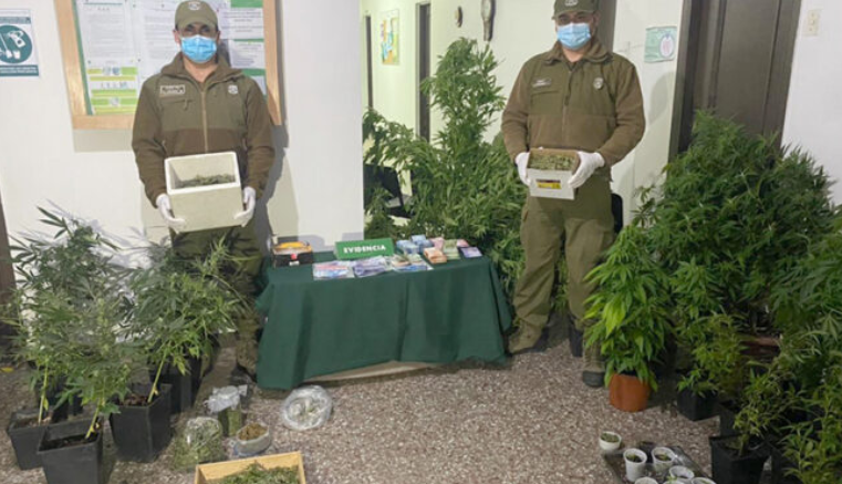 El allanamiento sorpresa arrojó como resultado el secuestro de 64 plantas de mariahuana, 1 kilo de Cannabis Sativa y 8 millones de pesos chilenos en efectivo (11 mil dólares). Además, entre los detenidos hay una menor de 17 años, también integrante del grupo familiar.