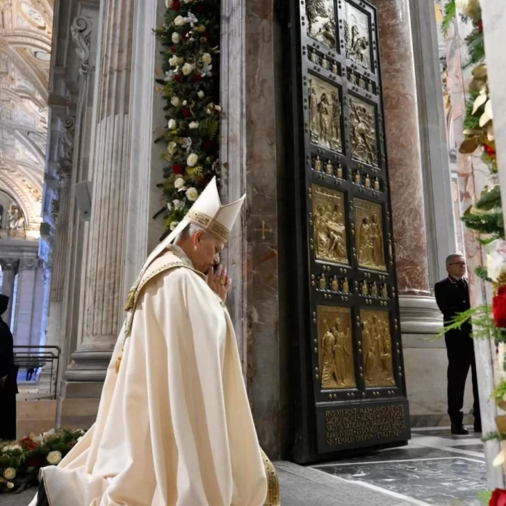 El gesto central se produjo a las 9:41 (hora local), cuando el Pontífice empujó personalmente los grandes portones de bronce, luego de llegar en procesión mientras se entonaba la antífona O clavis David. Antes de cerrarlos, se arrodilló ante el umbral y permaneció unos minutos en oración silenciosa, en un momento de fuerte carga espiritual y simbólica.