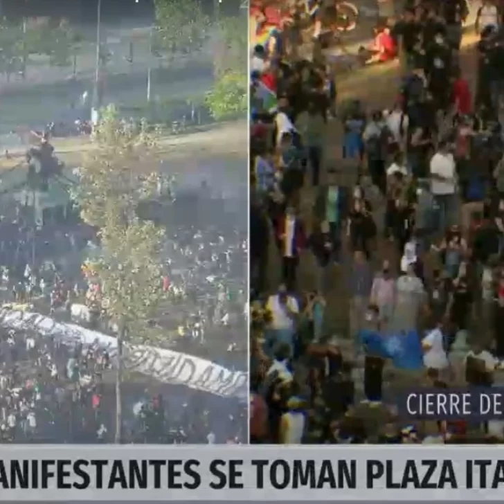 Según lo informado, carabineros intentaron dispersar un grupo mientras intentaba colgar una bandera en la estatua ubicada en el centro de la plaza, lo que fue resistido por los manifestantes, que con apoyo de otros jóvenes que deambulaban por los alrededores que respondieron lanzando piedras a los uniformados.