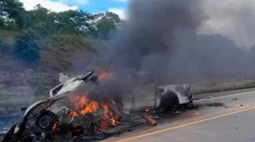 El siniestro involucró a una camioneta Chevrolet S10 y un utilitario Fiat Dobló, que por causas que aún investiga la Policía Federal de Caminos (PRF) colisionaron de frente. Tras el impacto, ambos vehículos se incendiaron por completo, lo que dificultó seriamente las tareas de rescate.