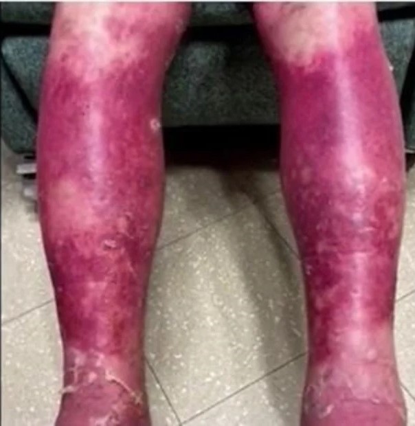 En el caso de Terrell la reacción fue mucho más allá de una leve irritación momentánea. Sus piernas y manos se hincharon en exceso y pasaron a un profundo y doloroso color púrpura.