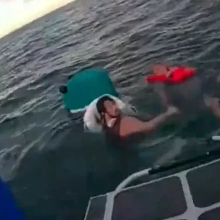 El hecho ocurrió el pasado miércoles 24 de agosto en el extremo exterior del puerto de Boston, en Estados Unidos. En las imágenes capturadas por la cámara corporal de la Policía durante el rescate, se puede ver a los dos hombres aferrados a una hielera para mantenerse a flote.