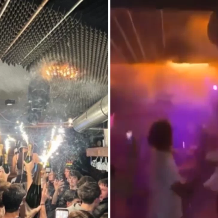 Casi 24 horas después del siniestro, imágenes y videos difundidos en las redes sociales muestran el momento exacto en que comenzó el fuego. En el material se observa cómo bengalas adheridas a botellas de champagne habrían alcanzado los paneles acústicos del techo, ubicados en un sótano del local. Este tipo de revestimiento suele estar fabricado con materiales plásticos altamente inflamables, capaces de arder rápidamente al contacto con chispas o partículas calientes.