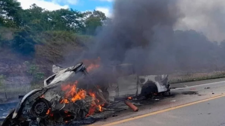 El siniestro involucró a una camioneta Chevrolet S10 y un utilitario Fiat Dobló, que por causas que aún investiga la Policía Federal de Caminos (PRF) colisionaron de frente. Tras el impacto, ambos vehículos se incendiaron por completo, lo que dificultó seriamente las tareas de rescate.