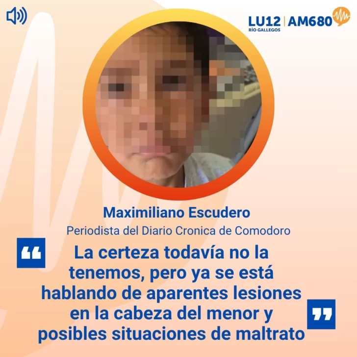 En Radio LU12 AM680 dialogamos con el periodista Maximiliano Escudero, del diario Crónica de Comodoro Rivadavia, tras la muerte de un niño de 4 años que es investigada por la Justicia. El menor ingresó al hospital en estado crítico y falleció horas después, mientras avanzan las pericias para determinar si hubo maltrato intrafamiliar.El caso generó un fuerte impacto en la comunidad y abrió interrogantes sobre el accionar del sistema judicial, ya que comenzaron a surgir testimonios y registros que indicarían situaciones previas de violencia. La autopsia será clave para esclarecer lo ocurrido, mientras crecen los reclamos por responsabilidades y respuestas urgentes.