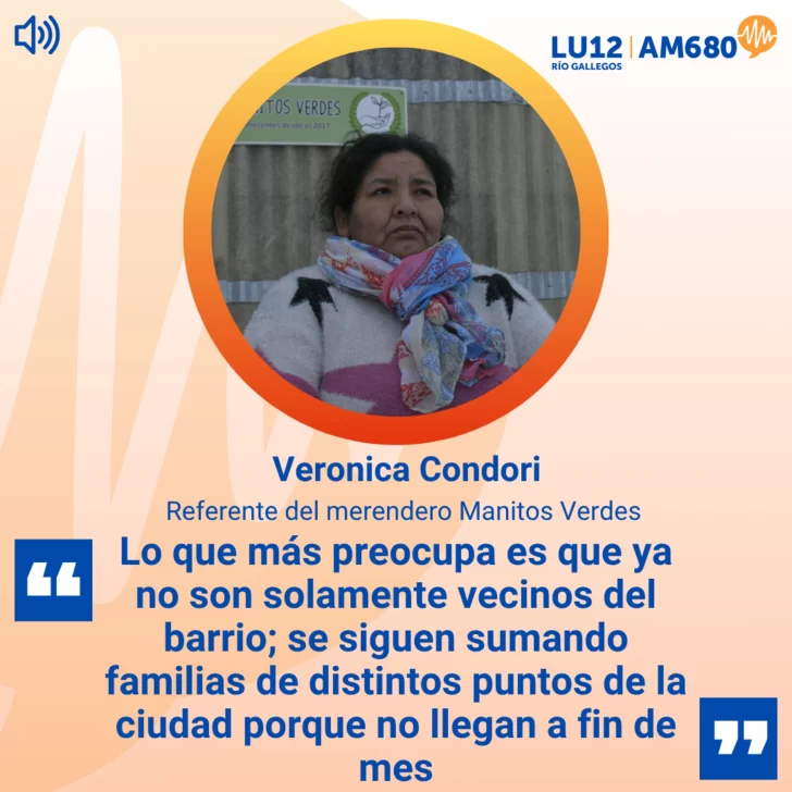 En diálogo con Radio LU12 AM680, Veronica Condori la referente del merendero Manitos Verdes expuso la compleja realidad social que atraviesan numerosos barrios de Río Gallegos, donde cada vez más familias recurren al espacio comunitario para acceder a un plato de comida, abrigo y contención.Con nueve años de trabajo territorial, Condori contó que actualmente asisten a unas 120 familias, muchas de ellas con empleo, pero sin ingresos suficientes para cubrir la alimentación básica. Además, destacó el trabajo voluntario de un equipo integrado por ocho personas que sostienen ollas populares, meriendas y campañas solidarias.
