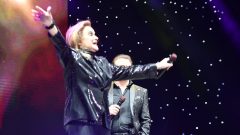 Para luego incorporar a su presentación, un video donde Dyango para poder interpretar un clásico que el público acompañó en coro.