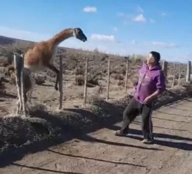 El hecho ocurrió a 30 kilómetros de Esquel, provincia de Chubut, y los protagonistas fueron Rolando y un aguerrido guanaco.