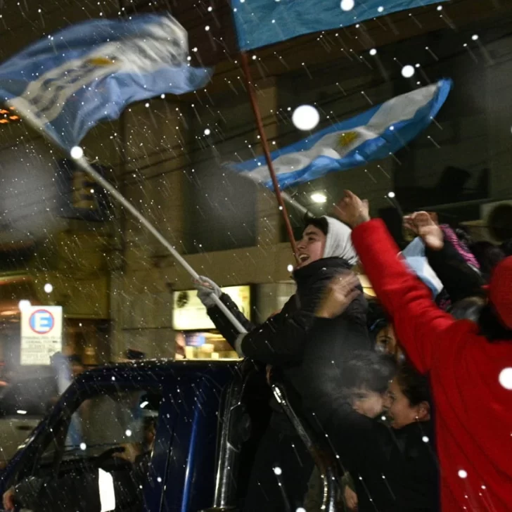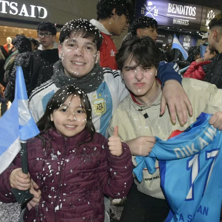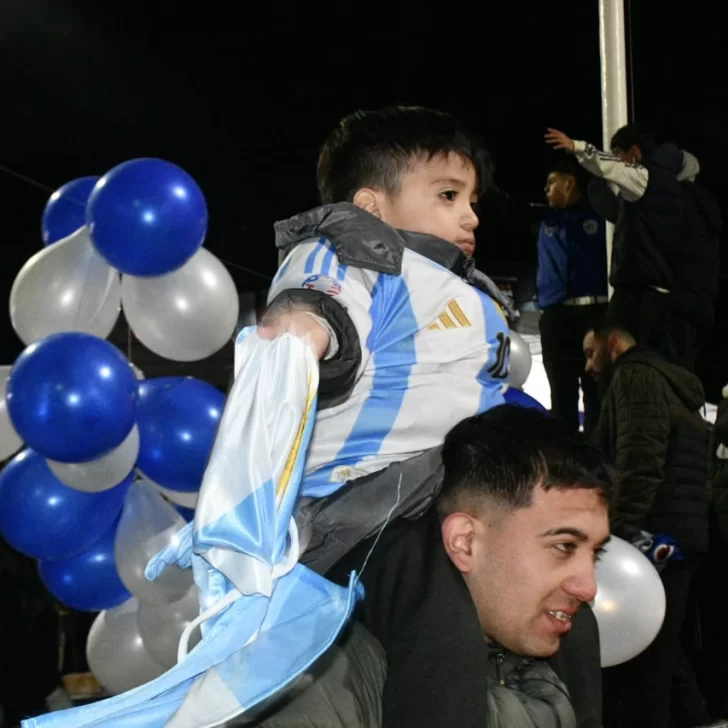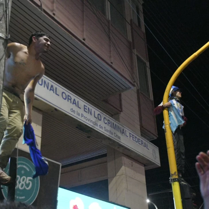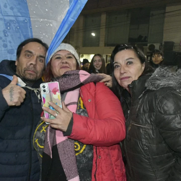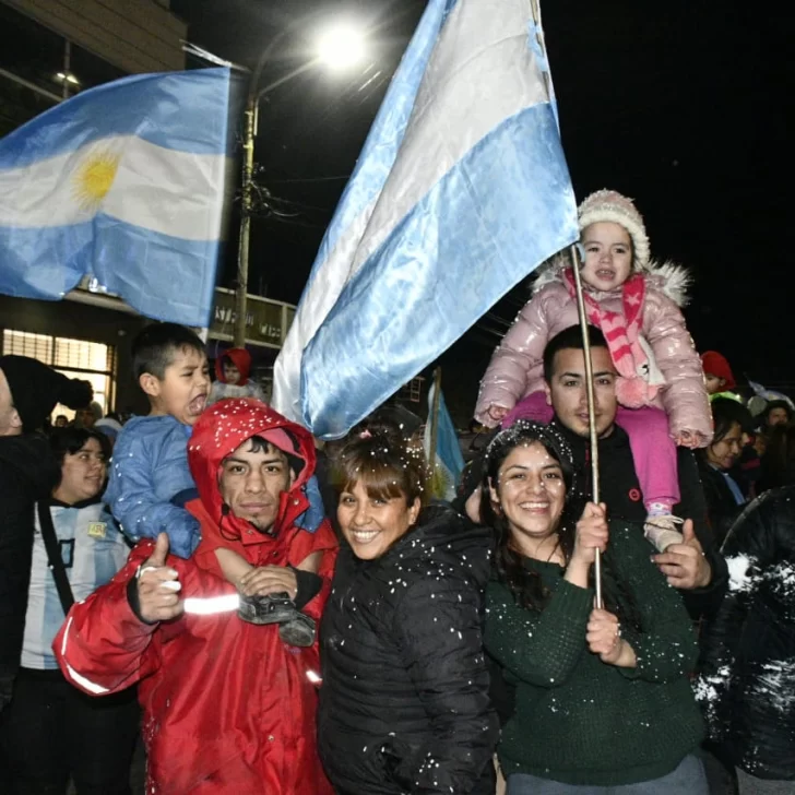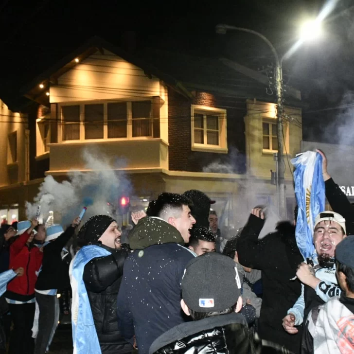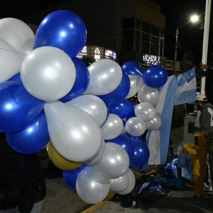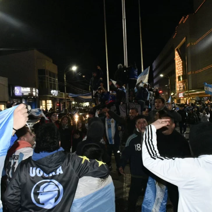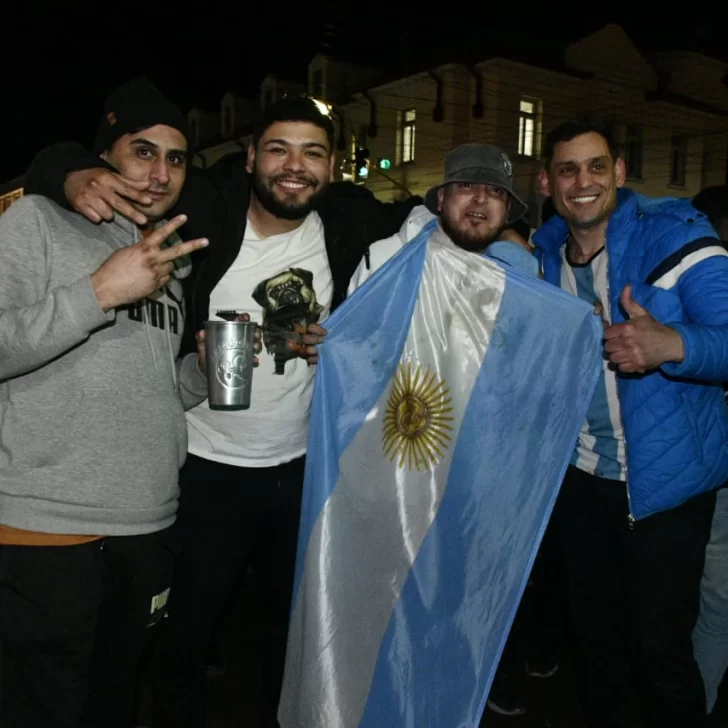 Pese a lo entrada la noche -ya que el partido comenzó una hora tarde y se extendió hasta por dos tiempos complementarios- los vecinos de Río Gallegos no quisieron privarse del festejo y un copioso grupo se concentró en la emblemática esquina de las Av. Néstor Kirchner y San Martín.