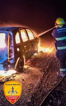Bomberos de Gobernador Gregores realizaron una intervención nocturna en el kilómetro 9,8 de la Ruta 27 a raíz de un incendio que afectó a un vehículo.