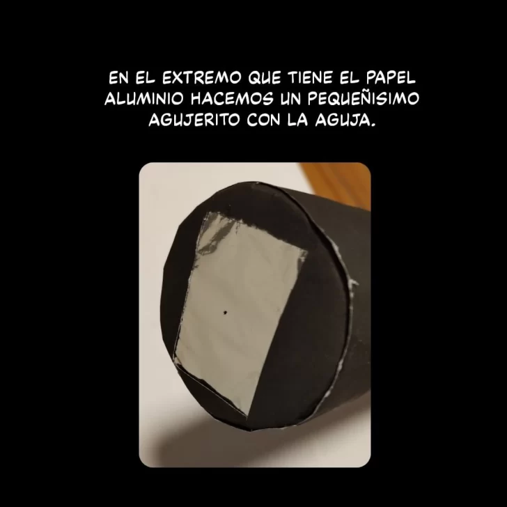 “La idea es muy simple y es la base de la fotografía moderna. Una vez construida según las instrucciones que te muestro, apuntamos al Sol y veremos su imagen proyectada sobre uno de los extremos que hace las veces de pantalla”, precisan en @astrochica.ialp.