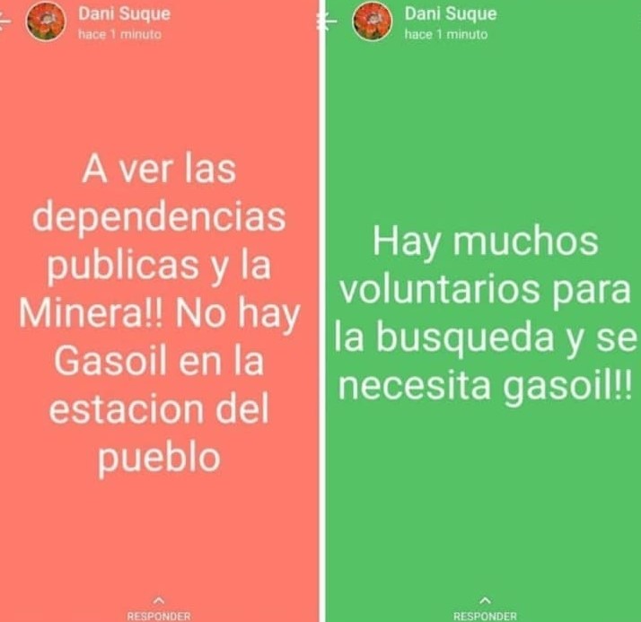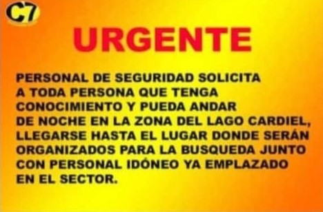 Poco antes de la medianoche, mediante las redes sociales solicitaron ayuda a los vecinos de toda la provincia. La intensión es sumar personas en la tarea de búsqueda y rescate.