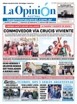 Tapa del Diario La Opinión Austral edición impresa del sábado 4 de abril de 2026, Río Gallegos, Santa Cruz, Argentina