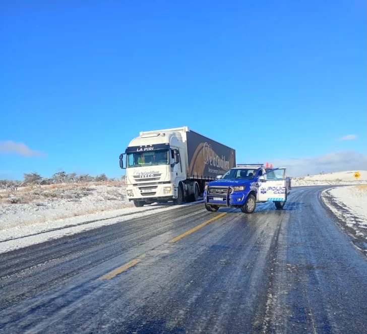 El operativo incluyó tareas de acompañamiento y control, teniendo en cuenta que la calzada presentaba nieve acumulada y sectores con hielo suelto, factores que incrementan considerablemente el riesgo de siniestros viales. Finalmente, el camión logró retomar su recorrido sin mayores inconvenientes.