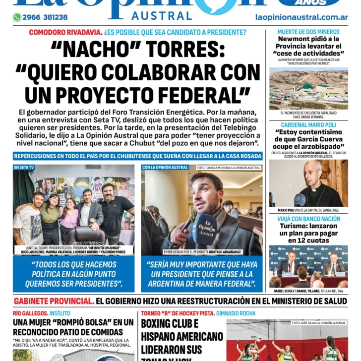 El gobernador de Chubut participó del Foro Transición Energética. Por la mañana, en una entrevista con Seta tv, deslizó que todos los que hacen política quieren ser presidentes. Por la tarde, en la presentación del Telebingo Solidario, le dijo a La Opinión Austral que para poder “tener proyección a nivel nacional”, tiene que sacar a Chubut “del pozo en que nos dejaron”.