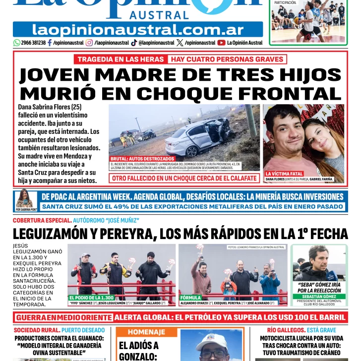 Se disputó la primera fecha en el autódromo José Muñiz. Jesús Leguizamón ganó en la 1.300 y Exequiel Pereyra en la Fórmula Santacruceña.