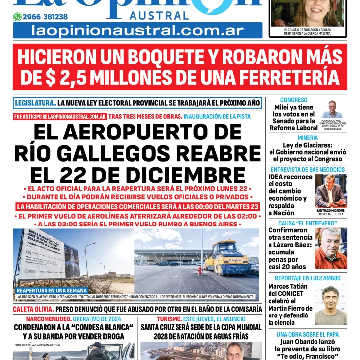 El aeropuerto de Río Gallegos reabre el 22 de diciembre