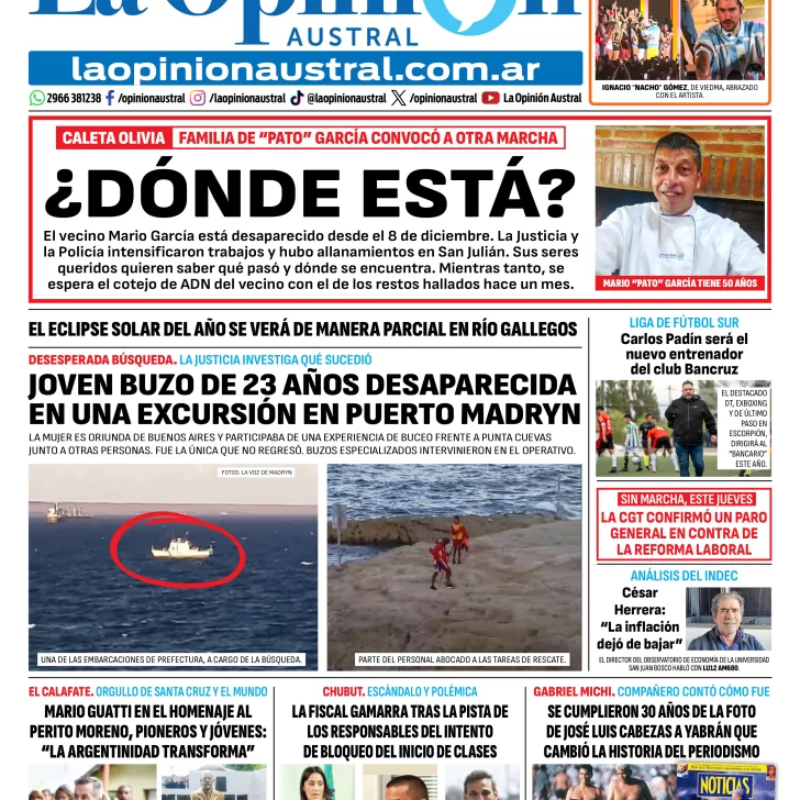 Desesperada búsqueda: joven buzo de 23 años desaparecida en Puerto Madryn