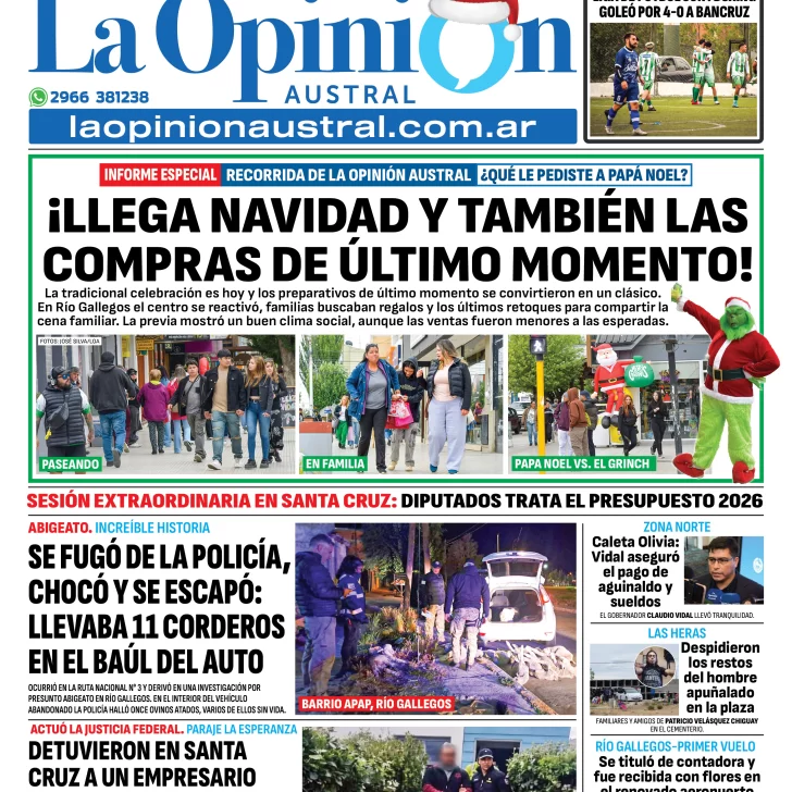 La tradicional celebración se vive este miércoles y los preparativos finales se convirtieron en un clásico. En Río Gallegos, el centro se reactivó con familias en busca de regalos y detalles para la cena familiar. La previa mostró un buen clima social, aunque con ventas menores a las esperadas.