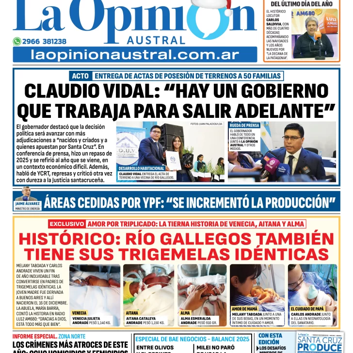 El gobernador destacó que la decisión política será avanzar con más adjudicaciones a “nacidos y criados y a quienes apuestan por Santa Cruz”. En conferencia de prensa, hizo un repaso de 2025 y se refirió al año que se viene, en un contexto económico difícil. Además, habló de YCRT, represas y criticó otra vez con dureza a la justicia santacruceña.