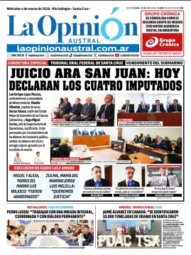 La Opinión Austral | La Opinión Austral Tapa del Diario La Opinión Austral edición impresa del miércoles 4 de marzo de 2026, Santa Cuzuz Por La Opinión Austral | 04 de marzo 2026 · 2:26 hs. Escuchá la noticia Escuchá la noticia Your browser doesn’t support HTML5 audio Leé más notas de La Opinión Austral Compartir esta noticia WhatsApp Facebook Ver comentarios