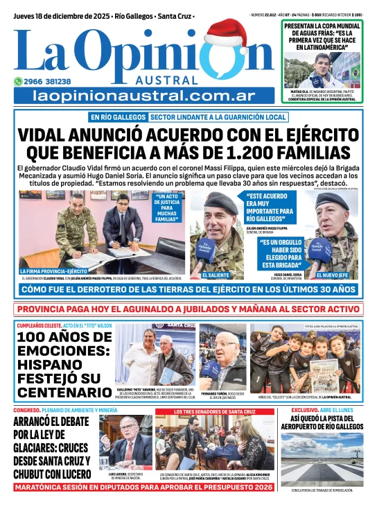 El club “Celeste” festejó 100 años de historia, deporte y pertenencia en el gimnasio Tito Wilson, con reconocimientos a socios históricos y una edición especial de La Opinión Austral.