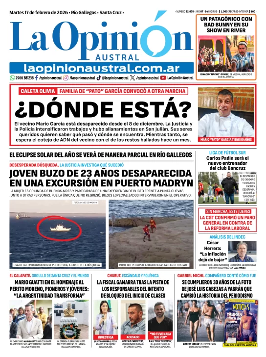 Mario García sigue desaparecido desde el 8 de diciembre. La Justicia y la Policía intensifican la búsqueda y se espera el cotejo de ADN de los restos hallados.