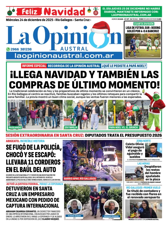 La tradicional celebración se vive este miércoles y los preparativos finales se convirtieron en un clásico. En Río Gallegos, el centro se reactivó con familias en busca de regalos y detalles para la cena familiar. La previa mostró un buen clima social, aunque con ventas menores a las esperadas.
