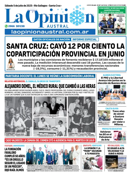 Santa Cruz: cayó 12 por ciento la coparticipación provincial en junio
