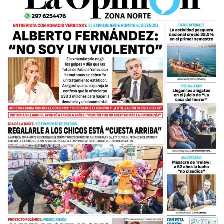 La Opinión Austral | La Opinión Zona Norte | Tapas LA OPINIÓN ZONA NORTE Diario La Opinión Zona Norte tapa edición impresa del lunes 12 de agosto de 2024, Caleta Olivia, Santa Cruz, Argentina Por La Opinión Austral | 12 de agosto 2024 · 7:23 hs. Escuchá la noticia Escuchá la noticia Your browser doesn’t support HTML5 audio EN ESTA NOTA Tapas Leé más notas de La Opinión Austral Compartir esta noticia WhatsApp Facebook Ver comentarios