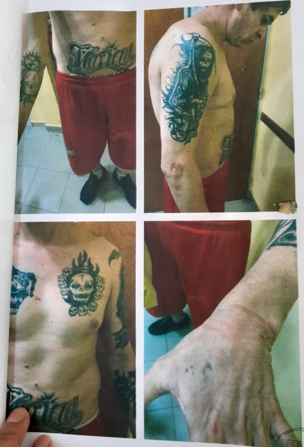Además tiene varios tatuajes que lo identifican. Tiene el dibujo de San la Muerte en el brazo y en el gemelo derecho, varios tatuajes de calaveras, en la pierna derecha tiene una imagen de la virgen y al Gauchito Gil en la espalda del lado derecho. Además en su abdomen se escribió “Marina”.