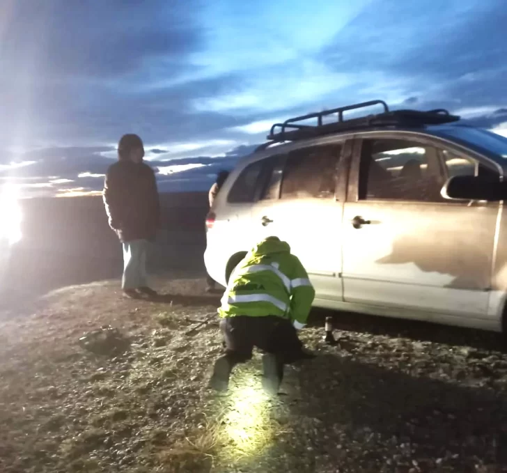 Según pudo saber La Opinión Austral, el hecho ocurrió a unos 35 kilómetros del Paraje Bajo Caracoles, cuando personal policial advirtió la presencia de un Volkswagen Suran detenido al costado de la ruta. Al acercarse al lugar, los efectivos constataron que el rodado presentaba la rotura de dos cubiertas, una situación que, en ese sector del territorio santacruceño, puede transformarse rápidamente en un riesgo para la integridad de las personas si no se actúa con rapidez.