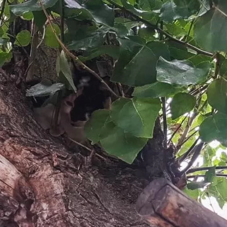 La mujer alertó que su gatito había quedado a gran altura sobre un árbol y no lograba descender por sus propios medios.