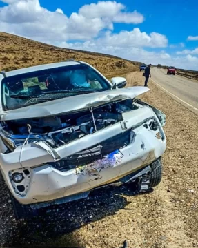 La camioneta, con tres ocupantes oriundos de Pico Truncado, sufrió un impacto frontal que activó todos los airbags del rodado, protegiendo a los pasajeros durante la colisión. El conductor, que posee una prótesis espinal, fue asistido con un collar cervical preventivo para evitar lesiones mayores.