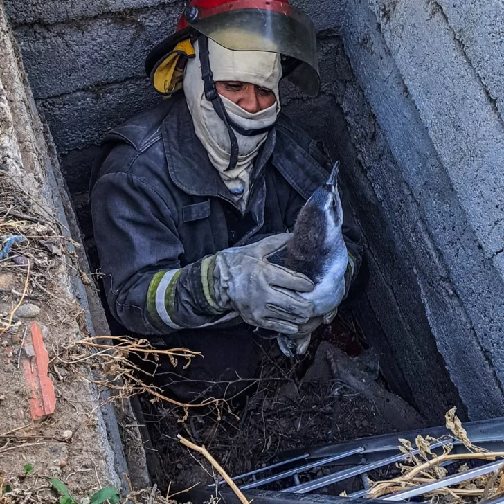 Un inusual operativo de rescate se desarrolló durante la noche del viernes en Puerto Deseado, donde personal de la División Cuartel 22° asistió a un pequeño pingüino que había quedado atrapado en una cámara séptica ubicada frente a la Pesquera Argenova, sobre la avenida Lotufo.