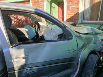 En su trayectoria descontrolada, la Hilux arrancó de raíz un poste de luz, cuya base quedó completamente destruida, y continuó avanzando, destrozó la casilla de gas con el medidor hasta chocar contra el frente de una vivienda, junto a una casa de repuestos, causando importantes daños materiales.