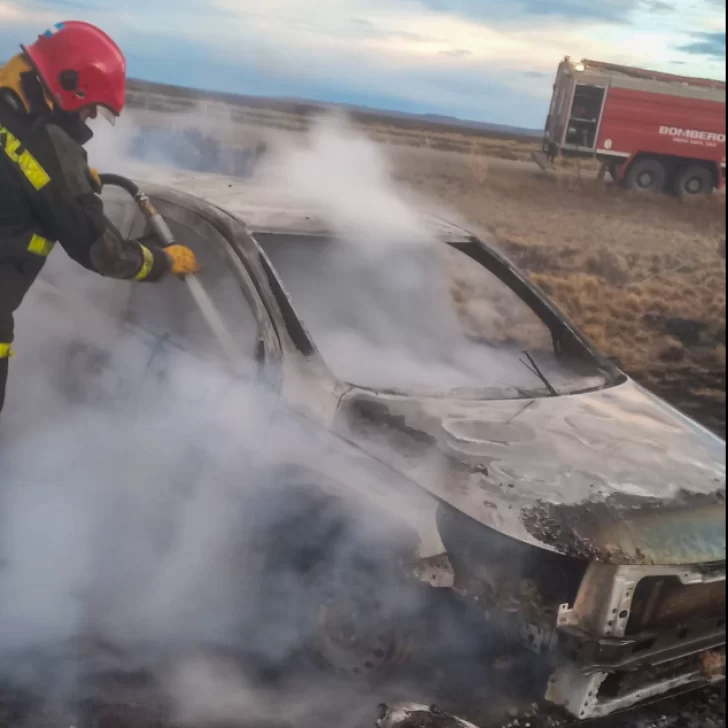 Un impactante incendio vehicular se registró en la tarde del domingo sobre la Ruta Nacional N° 288, a unos kilómetros de Puerto Santa Cruz, donde un automóvil se prendió fuego tras un derrape y las llamas se expandieron a una superficie de aproximadamente 150 metros cuadrados de pastizales.
