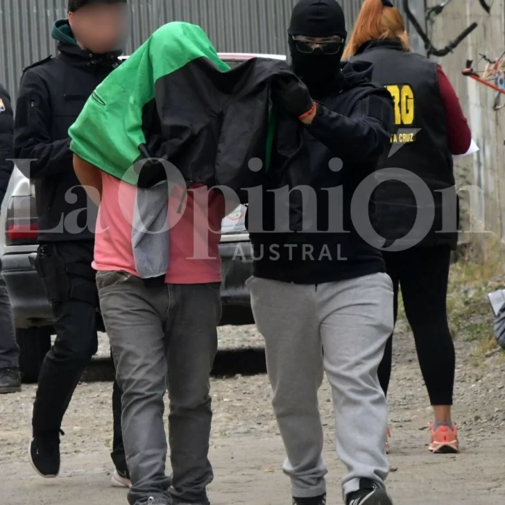 Un equipo móvil de La Opinión Austral estuvo presente en el lugar durante el operativo y registró el momento en que uno de los principales sospechosos fue trasladado por la Policía.