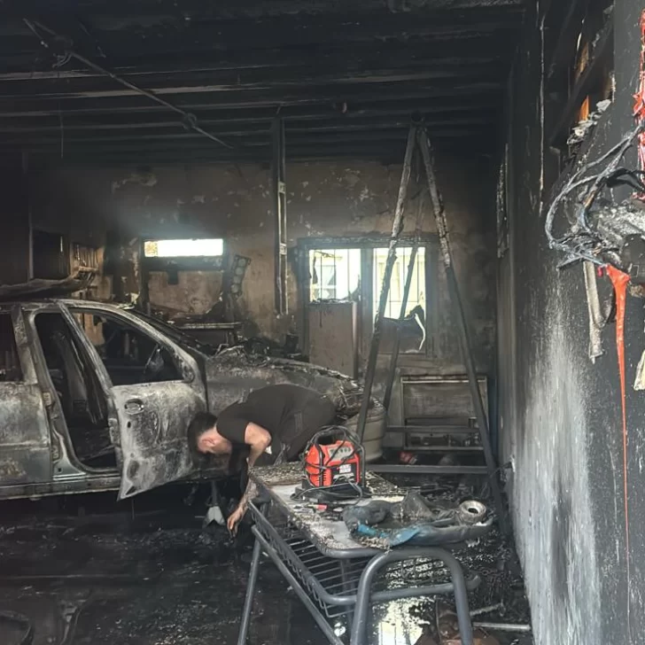 En el inmueble se encontraban los ocupantes, quienes explicaron que el espacio se utilizaba como taller mecánico y que el fuego se habría originado tras la explosión de un calefactor.