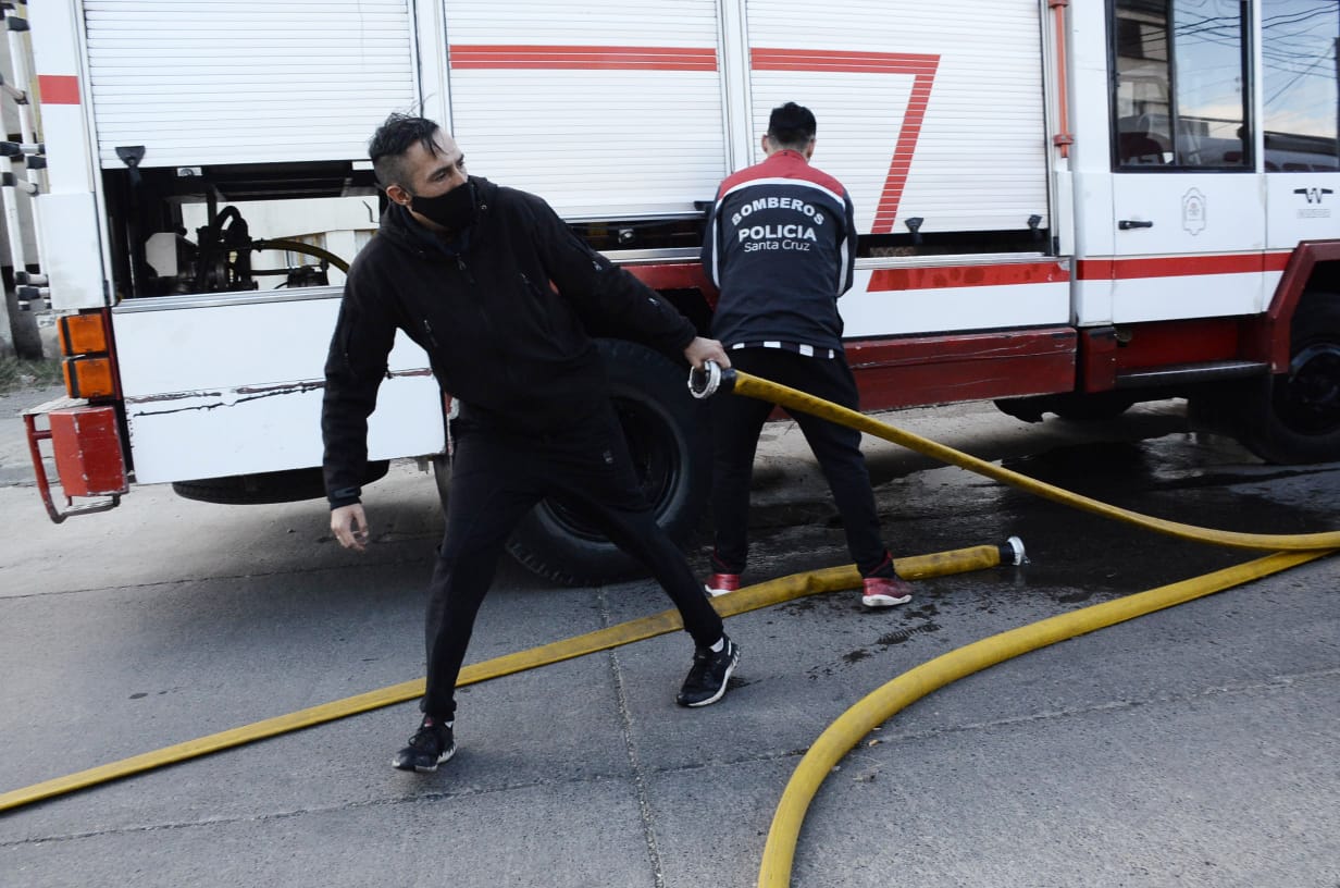 Personal de Bomberos trabajó en un incendio que se produjo en la noche de este jueves en el barrio Belgrano de Río Gallegos.