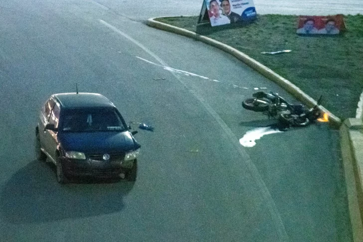 Apenas hace cuatro días, un Volkswagen Fox embistió una moto en la rotonda con avenida Asturias:. El conductor fue derivado al Hospital Regional con una herida en la pierna.